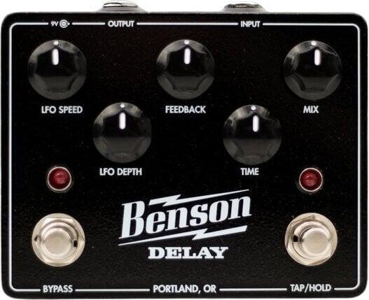 Ez egy automatizált szoftver általi fordítás:A Benson szalagszolgáltatás történetéből és a kazettás brigád visszhangjából merítve a tervezés folyékony és hangzatosan színes ismétléseket kívánt létrehozni kaotikus, de zenei degradációval. Ez a lényeg. A 30 ms-tól 1250 ms-ig terjedő tartományban a Benson késleltetés elég gyors a refrén, vibrato és slapback lejátszásához, és elég lassú ahhoz, hogy elmosódott és kísérteties hangzásokat hozzon létre, köztük lengő zenei hangok egész spektrumával. Tartsa lenyomva a csap gombot, hogy növelje a visszacsatolást az egyéni oszcillációhoz! Ideális hangjegyek megtartásához, és különösen "alien invasion" hangok létrehozásához az időgombbal együtt. Akkor működik a legjobban, ha a visszacsatoló gomb kissé magasra van állítva. Nem okoz nemkívánatos kattanást a jelútba. A belső trimm potenciométerrel állítható. Az alacsony frekvenciájú oszcillátor hatalmas sebesség- és mélységi tartományban, valamint szinuszos, négyzetes és véletlenszerű hullámformákkal rendelkezik. A Benson Delay a PT2399-en valaha alkalmazott legpontosabb koppintási tempóval rendelkezik, köszönhetően a Bontempónak, egy nyílt forráskódú technológiának, amelyet Antoine Ricoux talált fel az Electric Canary-nál, majd Octave Zangs (két zseni) filmszínész finomította és implementálta. Minden pedál kalibrálva van.