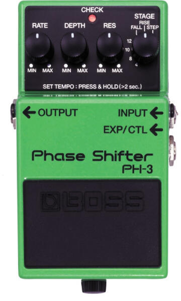 Modern Phaser effekt Tap Tempo szinkronnal Többféle típusú phaser effekt elérhető vele a Vintage-től a modernig. Külön "Rise" és "Fall" mód, mely különleges egyirányú fáziseltolást eredményez. Külső expression pedál csatlakoztatásával (EV-5) valós-időben állítható a Rate, Filter vagy Tempo paraméter. Tap tempo funkció is elérhető. Jellemzők: