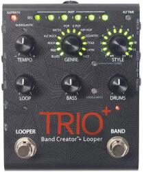 Az itt látható egyedi termékleírások és képek a DJSoundLight Kft tulajdonát képezik. A TRIO+ egy egyszerűen használható gitár pedál, ami meghallgatja, hogyan játszol, és automatikusan basszus és dobfutamokat generál, amik passzolnak a dalodhoz. Csak dugd be a gitárodat a TRIO+ pedálba, nyomd meg a Band lábkapcsolót, hogy megtanítsd a pedálnak az akkordjaid és a ritmusodat, majd nyomd meg még egyszer a Band lábkapcsolót, hogy a saját, személyre szabott zenekaroddal játszhass! A basszus és a dobok hangereje külön állítható a tökéletes mix elérése érdekében a TRIO+ Bass és Drums gombjaival. A TRIO+ emellett rendelkezik egy Simple Bass gombbal, amivel választhatsz három különböző, sűrűbb vagy egyszerűbb basszusmenet között. Tovább tágítva a Band Creator paradigmát, a TRIO+ lehetővé teszi számodra azt is, hogy beloopolhasd a gitárszólamaidat, és tetszés szerint rakhasd őket sorba, hogy teljes dalokat alkothass egy lendülettel. Nyomd meg a TRIO+ Looper lábkapcsolóját, hogy rögzíts egy loopot, amelyre végtelen számú szólamot rögzíthetsz még. A Loop hangerejét függetlenül állíthatod a TRIO+ Loop gombjával. A loopokat önmagukban is rögzítheted, mint egy hagyományos looperrel, vagy akár a kísérőzenekarral együtt is. Használhatod a beépített gitár-effekteket a TRIO+ Guitar FX gombja segítségével, de bekötheted kedvenc effektjeidet is a jelútba a TRIO+ FX Send és FX Return aljzataiba dugva. A TRIO+ memóriája tizenkét különböző zenei műfajt tartalmaz, ezek a Blues, R&B, Rock, Alternatív Rock, Metal, Pop, Elektronikus Pop, Hip-Hop, Country, Folk, Latin, és Jazz. Tizenkét dalstílus választható mindegyik műfajon belül a TRIO+ Style adatbeviteli gombjával, ezen belül választható 3/4 vagy 4/4 ütemmutató. Többszínű LED-ek gondoskodnak arról a TRIO+ Style gombja körül, hogy mutassák, melyik stílus passzol legjobban a dalodhoz. A TRIO+ legfeljebb öt részt tud megtanulni dalonként, tökéletes arra, hogy megalkoss egy intrót, versét, refrént, bridge-t és outro-t. A dalrészek azonnal előhívhatóak, amint visszajátszod a dalt, vagy előre programozottan, szekvenszerként is lejátssza az eszköz, automatikusan. Egy opcionális DigiTech FS3X lábkapcsolót is csatlakoztathatsz a TRIO+'s Control In aljzatába, így kéz nélkül tudsz választani három különböző üzemmód közül. Maximum 12 dal és ezek loopjainak tárolására van lehetőség a TRIO+'s Micro SD kártyáján (tartozék). Több dalt szeretnél alkotni? Semmi gond. Csak helyezz be egy másik SD kártyát, és már meg is taníthatod a zenekarnak az új dalaidat. Hogy kezelni tudd az összes dalodat és az összes loopodat egy komputeren, töltsd le az ingyenes Librarian Manager szoftvert a digitech. com oldalról, amely elérhető Windows® és Mac® operációs rendszerekre is. A TRIO+ független Tempó, Műfaj (Genre), Stílus (Style), loop hangerő (Loop Level), basszus hangerő (Bass Level), dob hangerő (Drums Level), fejhallgató hangerő (Headphone Output Level) szabályzókkal rendelkezik. Bemenetei: gitár (Guitar), effekthurok bemenet (FX Return) és Control. Kimenetei: erősítő felé (Amplifier), keverőpulthoz (Mixer), effekthurok kimenet (FX Send) és fejhallgató kimenet (Headphone). Beépített gitáreffektjei műfajtól függően használhatóak. Lábkapcsolói Soft Click üzemmódúak és jár hozzá a 9V DC adapter.