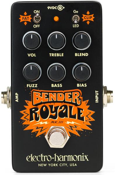 Irányítás: 1x FS, Volume, Fuzz, Bass, Treble, Blend, Bias, Fat Switch, Clip Switch,