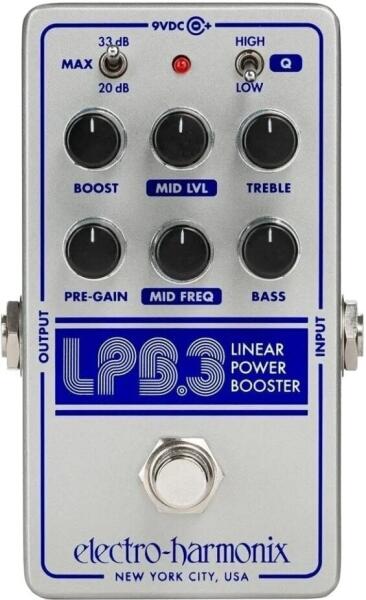 Ez egy automatizált szoftver általi fordítás:Az Electro-Harmonix által bevezetett effektus az Electro-Harmonix LPB-3 Linear Power Booster & EQ-ra változik. Az aktív EQ-nak, a középhangok erőteljes parametrikus vezérlésével és az akár 33 dB-es hangerősítéssel az LPB-3 tökéletes eszköz bármilyen hangszín beállításhoz. Emelje hangját gazdag boldogsággá olyan átalakító precizitással, mint még soha. A nanoméretű EHX házban elhelyezett LPB-3 képes akár +33 dB-lel növelni a nettó erősítést 3 sávos parametrikus EQ segítségével. Az aktív 3 sávos EQ TREBLE és BASS vezérlőkkel rendelkezik a magas és mély hangok vezérléséhez, valamint egy erőteljes parametrikus középső vezérlés állítható MID FREQ-val és Q-val. A BOOST a pedál összteljesítményét állítja be, míg a MAX kapcsoló 20 dB és 33 dB között váltogatja a maximális kiemelést. A PRE-GAIN vezérlővel finomhangolhatja az általános erősítést és a hangerőt. Ennek a booster pedálnak az egyéb jellemzői közé tartozik a választható pufferelt/valódi bypass kapcsolás és a belsőleg meghosszabbított 30 V-os tápsín a nagyobb belmagasság érdekében.