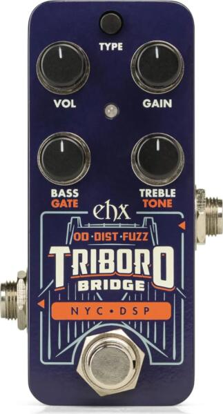 Termékleírás Az EHX Pico Triboro Bridge egy háromfunkciós drive box, amely az overdrive, a distortion és a fuzz világát hozza el számodra. Ez a kompakt eszköz megoldás minden hangzásbeli igényedre, átívelve bármilyen gain-rést. Erőteljes EQ és bemeneti kontúr funkciókkal rendelkezik, így könnyedén testre szabhatod a hangzást. Ne hagyd ki a lehetőséget, hogy felfedezd a Triboro Bridge sokszínűségét, és találd meg az új hangzásodat, vagy frissítsd meg a megszokottat. A pico méretű lábnyommal pedig a pedálboardodra is könnyen felfér! Specifikációk