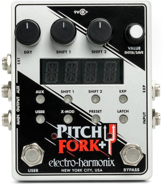 Ez egy automatizált szoftver általi fordítás:A Pitch Fork® + két független hangmagasság-eltolási modullal rendelkezik, amelyek mindegyikét teljes mértékben irányítják. Mindkettő +/- három oktávval felfelé vagy lefelé fordítja a hangmagasságot, és +/- 99 centet elront. Szilárd követéssel, organikus, zenei hangzással és kiterjedt vezérléssel ez a tökéletes harmonizáló. Dedikált hangerő-szabályozók mind a Shift, mind a Dry jelekhez. Két kimenet, fő és kiegészítő, több útválasztási lehetőséggel. 10 egyedi gyári beállítás, valamint 100 program egyszerű tárolása / visszahívása. Bypass lábkapcsoló, amely az effektus és a pufferelt bypass között vált. Retesz üzemmódban vált az effektusok és a bypass mód között. A jelenlegi üzemmódban az effekt akkor van, amikor az FS-t lenyomják, és a pedál elengedésbe kerül. Felhasználó által programozható lábkapcsoló, amely különféle funkciókhoz rendelhető, például a Shift vagy a némítás egy előre beállított programhoz. Külön LED-del van felszerelve. EXP bemenet EXP vagy CV vezérléshez a paraméterek széles választékával három almenüben: Frekvencia, Glissando és Hangerő. EXT bemenet egy külső lábkapcsoló, például az EHX hármas lábkapcsoló csatlakoztatásához, amely lehetővé teszi a játékosoknak az üzemmódváltást, az almenükbe való belépést / kilépést és az előre beállított értékek betöltését. Nyolc mód, köztük az X-MOD, amely magában foglalja a keresztmodulációt, amely FM és csengő mod effektusokat hoz létre, a LATCH, az eredeti Pitch Fork alapján, de a Momentary mód javításával.