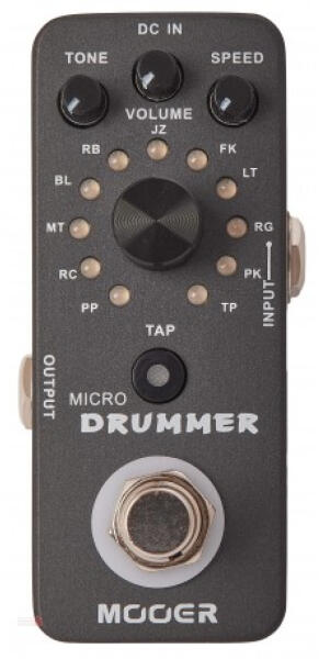 Termékleírás A Mooer Micro Drummer egy kiváló minőségű dobgép, amelyet gitárosok számára terveztek. A készülék kompakt mérete lehetővé teszi, hogy könnyen szállítható legyen, így ideális választás otthoni gyakorláshoz és élő előadásokhoz egyaránt. A különböző ritmusok és effektusok széles választéka biztosítja, hogy minden stílusú zenész megtalálja a számára megfelelőt. Ez a dobgép 3 különböző stílusban kínál ritmusokat, amelyek közül választhat, legyen szó rockról, jazztől vagy popról. Az egyszerű és intuitív kezelőfelület lehetővé teszi a gyors beállítást, így több időt tölthet a zenélésre és kevesebbet a technikai részletekkel. A Mooer Micro Drummer tökéletes kiegészítője bármely gitáros felszerelésének, mivel a hangzást gazdagabbá és dinamikusabbá teszi. Ezen kívül a készülék sztereó kimenete lehetővé teszi, hogy egyszerűen csatlakoztassa a keverőhöz vagy egy másik hangrendszerhez. Specifikációk