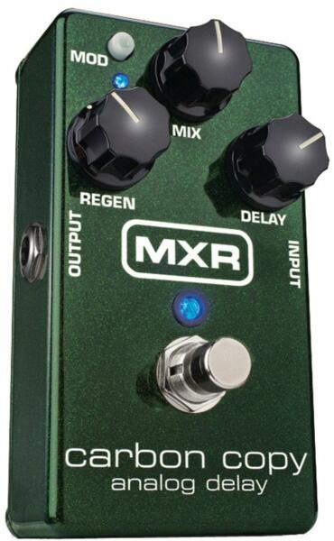 effekt pedál: MXR Carbon Copy Delay, analóg kivitel, 20–600ms késleltetés, határtalan lehetőségek a klasszius slap-echo hatástól a modern hangzásig, Delay, Mix és Regen szabályzó potméterek, masszív fém ház, klasszikus MXR formatervezés, zöld szín