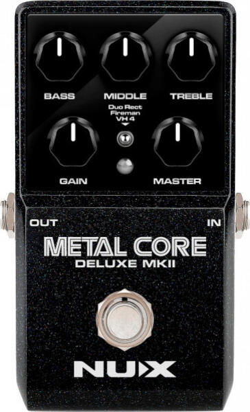 Termékleírás A NUX METAL CORE DELUXE MKII egy nagy gain előerősítő pedál, amely 3 különböző nagy gain erősítő modellt kínál, köztük a Duo Rect, Fireman és VH4. A modellek közötti választáshoz használjon egy 3-utas kapcsolót. Az IR (impulzus válasz) kulcsszerepet játszik az ampless (erősítő nélküli) használatban, mivel megadja a kabinet hangzását, hogy teljes legyen a tónuskeresés. Minden egyes erősítőnek, amely a METAL CORE DELUXE MKII-ben található, van egy megfelelő IR-je is. A MetalCore szerkesztő szoftveren keresztül saját kedvenc harmadik fél IR-jeit is betöltheti. Kérjük, látogasson el a termékoldalra és töltse le a szerkesztőt (a METAL CORE DELUXE MKII támogatja az 512 mintás IR felbontást). Specifikációk